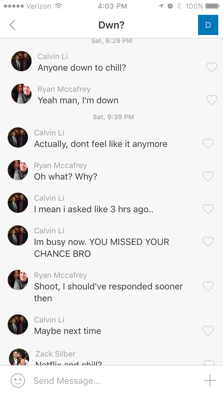 The sense of urgency makes spontaneous meetups a reality